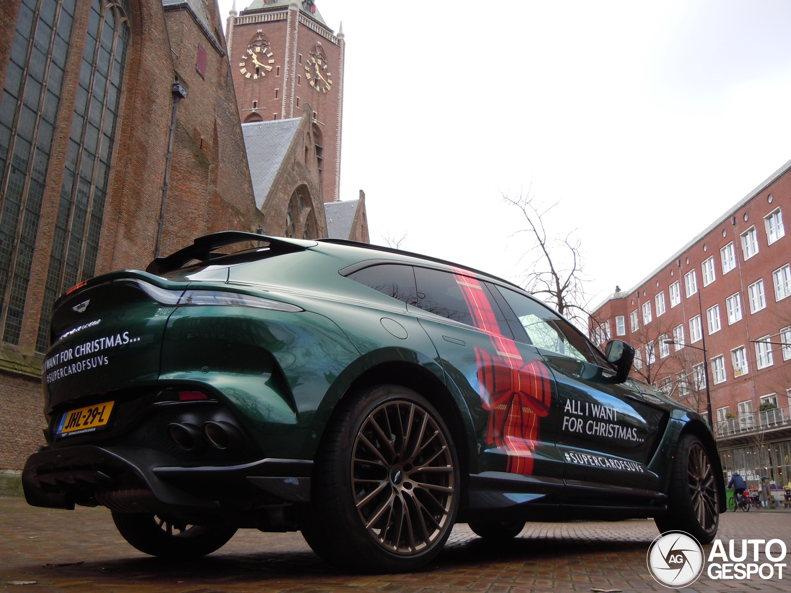 De DBX 707 in een Kerstwrapping gespot tijdens een bezoekje aan Den Haag waar de auto rondreed in een promotie stunt. Mooi om te zien, en veel bekijks. 707 PK Onder Haagse toren en bij Hotel Des Indes