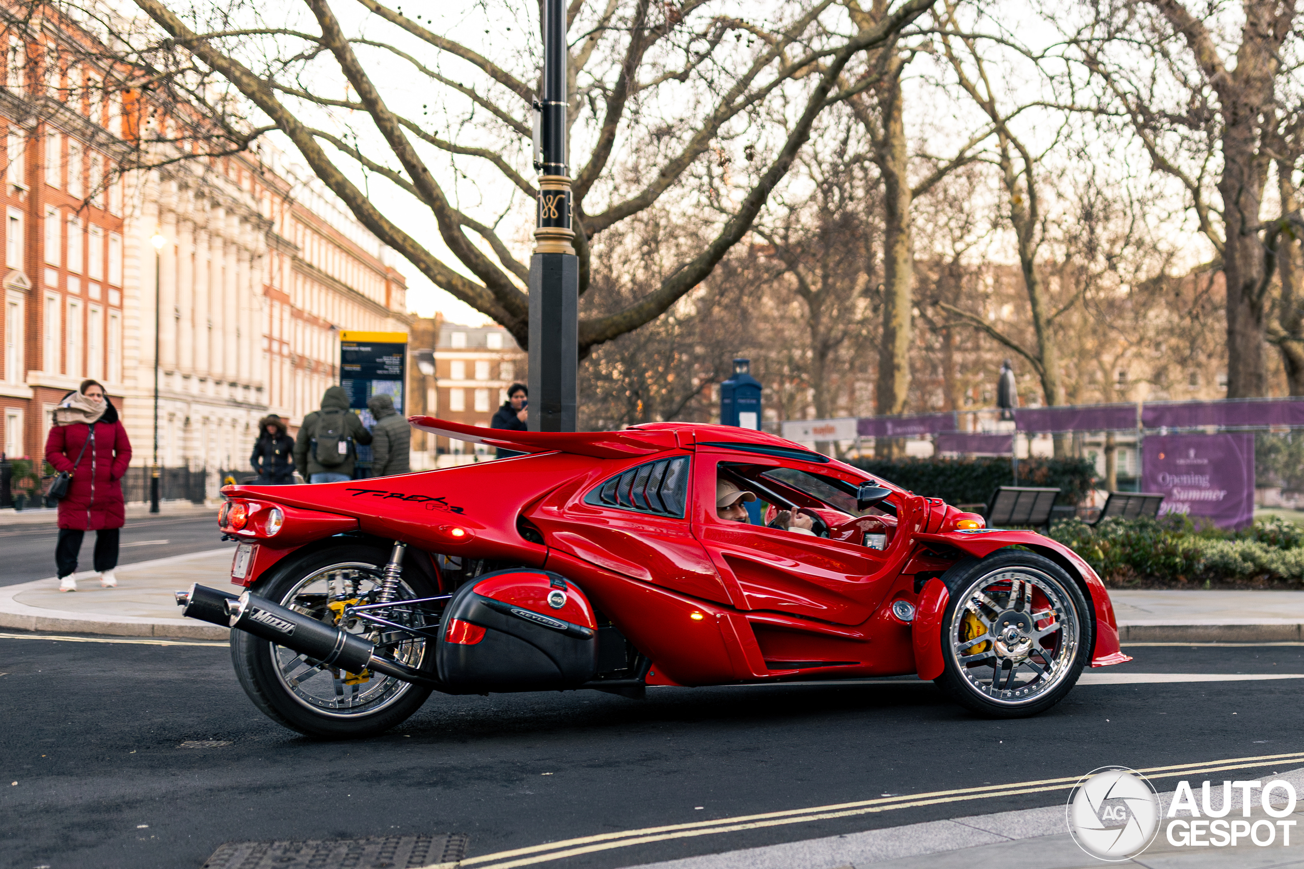 An open Canadian three-wheeler in a freezing London winter, with a UAE plate worth more than most hypercars. Perfectly normal for London, really